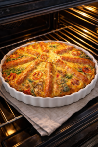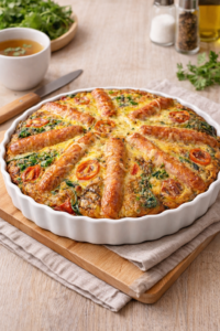 Soft vegetables, gently set eggs, and a golden top create a dish that feels supportive rather than overwhelming. It holds its shape, reheats well, and finishes cleanly.