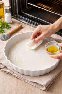 2. Preheat the oven to 170°C / 340°F. Lightly grease a round baking dish.