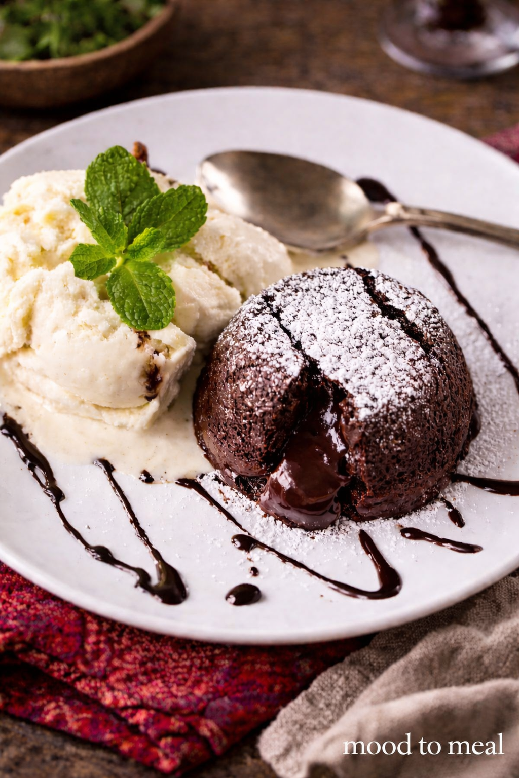 That’s why, for this mood, a warm chocolate lava cake with vanilla ice cream feels right.