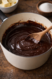 - Begin by melting the dark chocolate and butter together slowly until smooth and glossy. Let it cool slightly so it stays calm and silky.