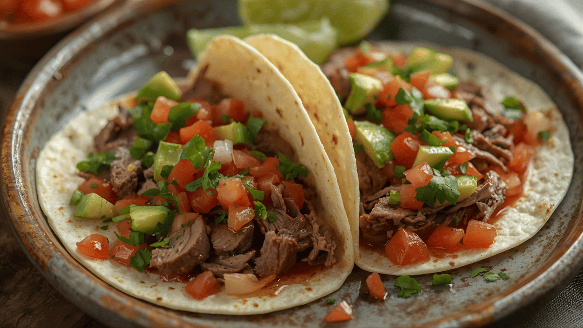 - Fill each tortilla with brisket, top with cilantro, tomatoes, and avocado.