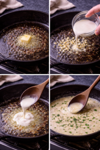 - Pour in the cream and stir gently.