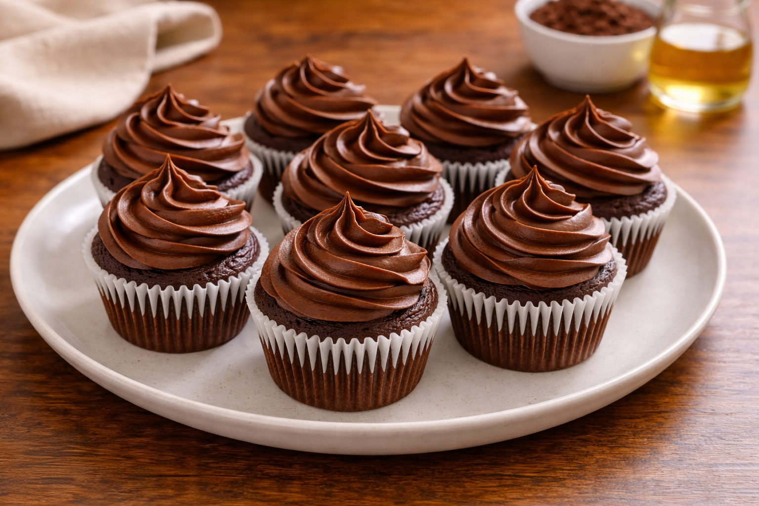 The cocoa gives deep chocolate flavor without needing melted chocolate. Oil keeps the cupcakes moist even if they bake a minute too long. Milk softens the crumb. Everything has a purpose, and nothing is extra.