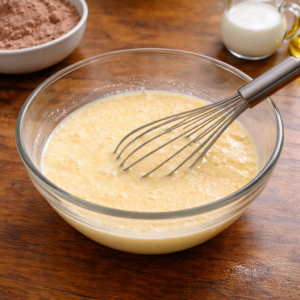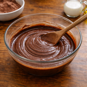 The batter should look smooth, slightly thick, and evenly chocolate-colored.