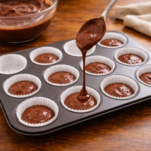 These cupcakes bake quickly, which is exactly what you want when patience is low. Slide the tray into the oven and set a timer. While they bake, the smell of chocolate fills the kitchen, and honestly, that part alone helps your mood more than expected.