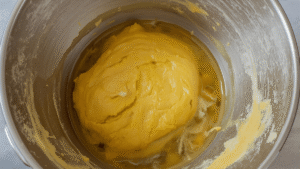 - Add sweet potato, eggs, spices, vanilla, and browned butter to the yeast. Add flour slowly until a soft dough forms.